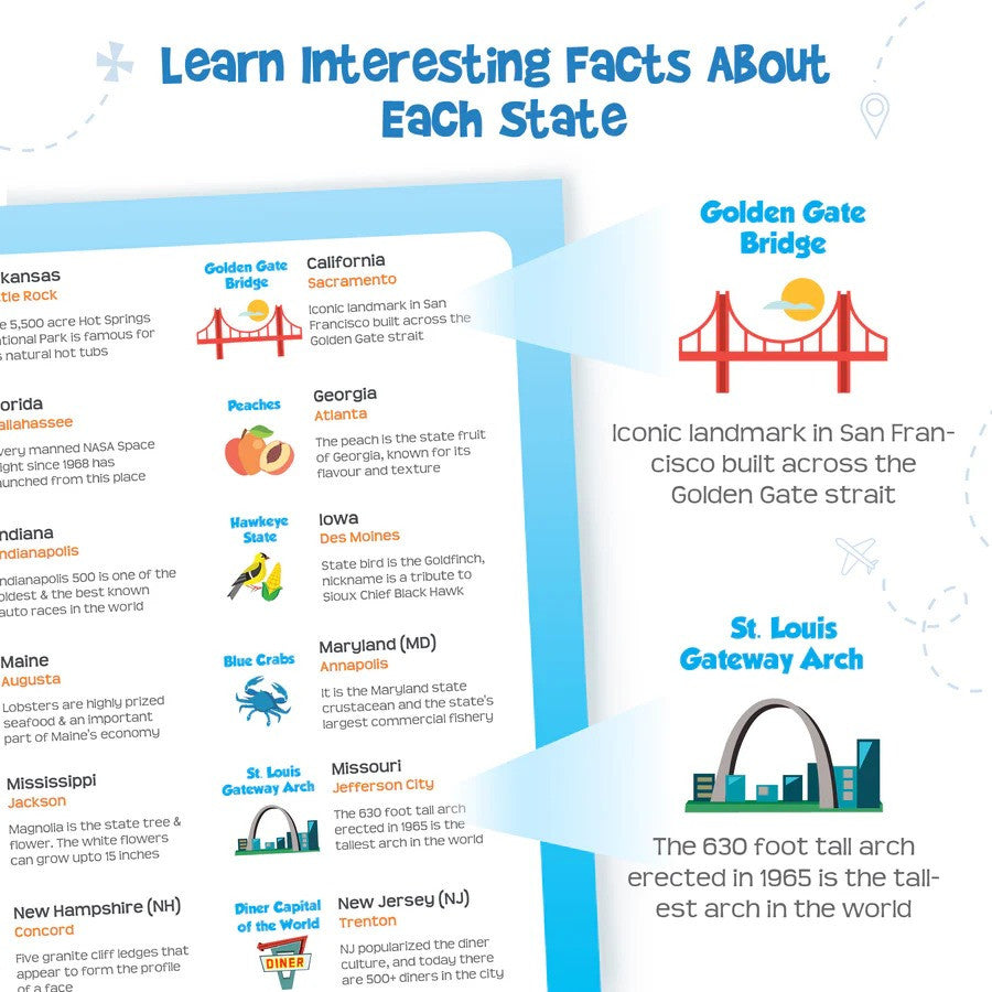 - GEOGRAPHY MADE FUN: A unique, fun and exciting puzzle toy to help children learn about the States of USA, their Neighbors, Capitals & some interesting fun facts