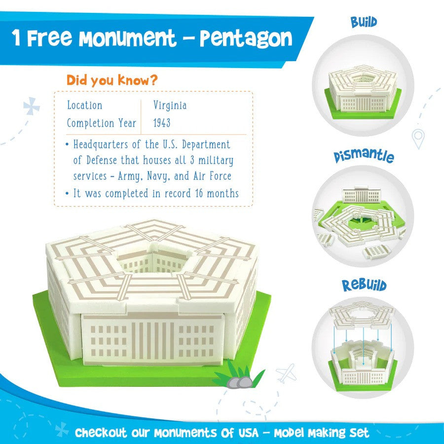 - BONUS: FREE MODEL MAKING SET: Includes a free model making set where a child can build "The Pentagon" that brings out the architect inside the child with our way of play - Build, Dismantle & Rebuild